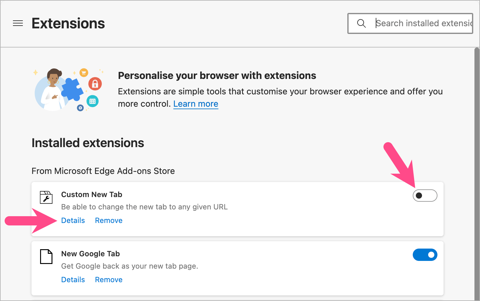 - 安裝自定義新標籤來自 Edge 附加組件商店。