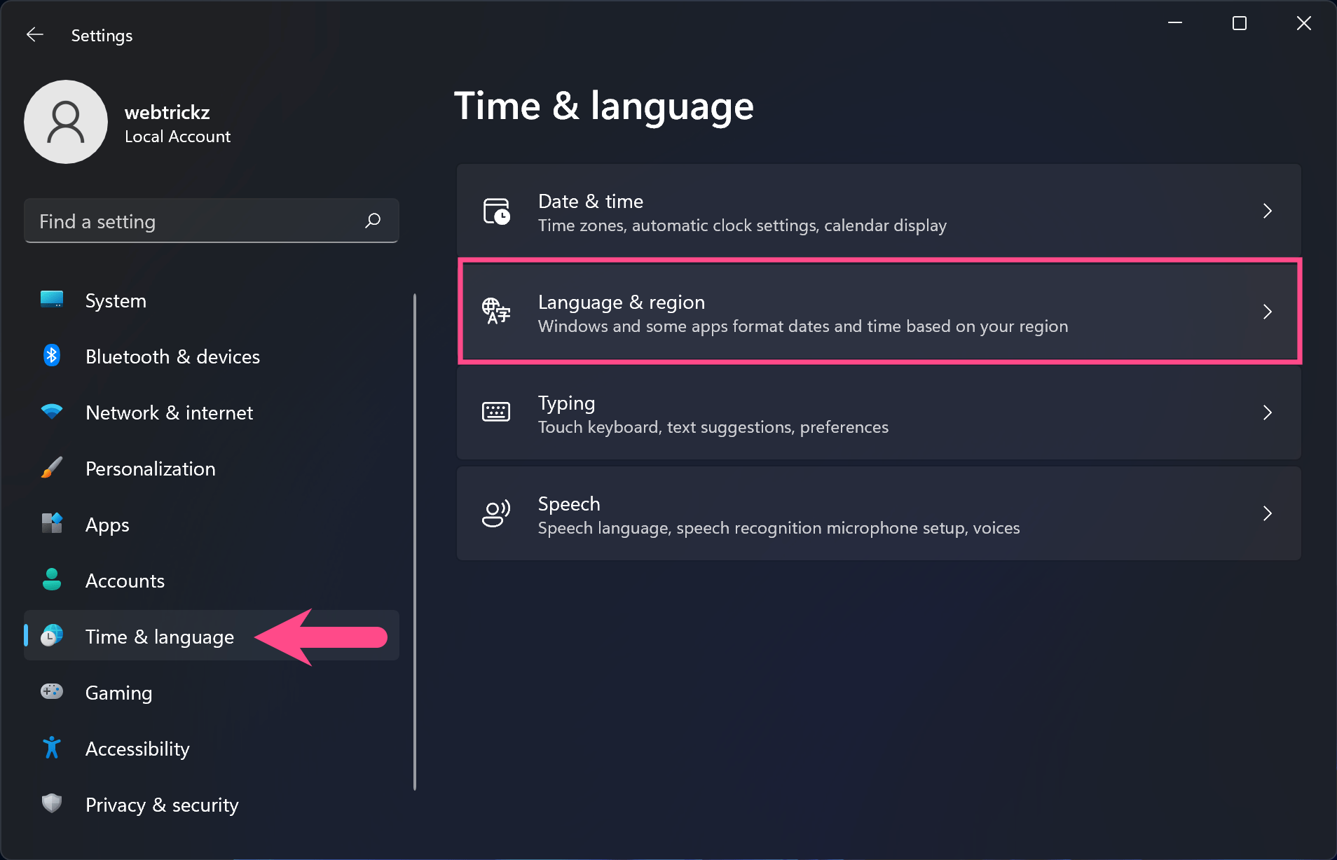 Win + I)。 - 導航至時間和語言 > 語言和地區。