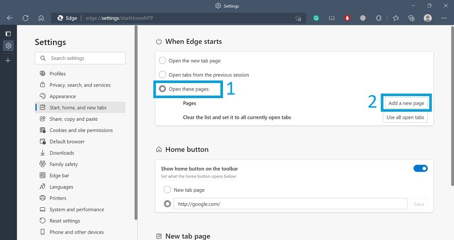 有趣的是,Edge允許您在啟動瀏覽器時設置多個頁面以打開。您可以按照與上述相同的說明添加更多頁面。