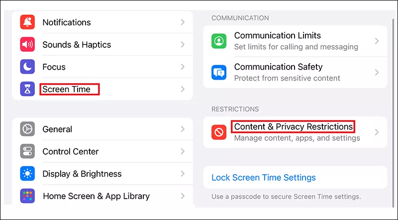 步驟2:輕敲屏幕時間>內容和隱私限制。