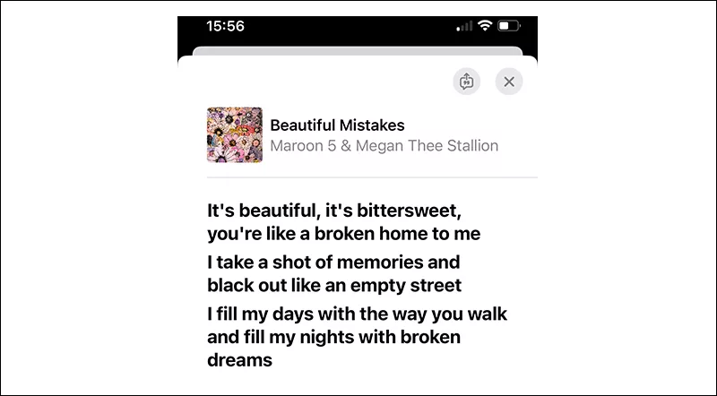 筆記:並非所有歌曲都有歌詞。 Apple Music 提供多種歌曲的歌詞,但可用性可能因歌曲和藝術家而異。