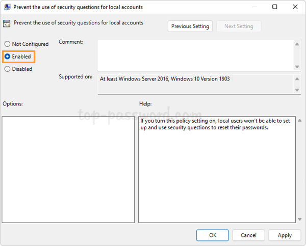 只需打開本地組策略編輯器並瀏覽到:Computer Configuration -> Administrative Templates -> Windows Components -> Credential User Interface。在右側窗格中,查找策略“防止對本地帳戶使用安全問題”並雙擊它。