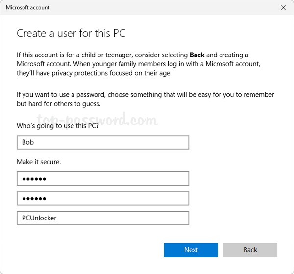 當您進入添加離線本地帳戶的步驟時,只需將密碼字段留空,3個安全問題的框就會自動消失,您就可以繼續完成本地帳戶的創建。