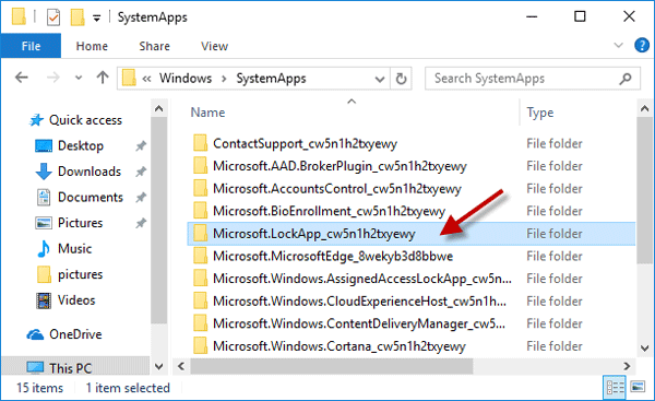 步驟2導航到 C:WindowsSystemApps,然後找到“Microsoft.LockApp_cw5n1h2txyewy”文件夾。