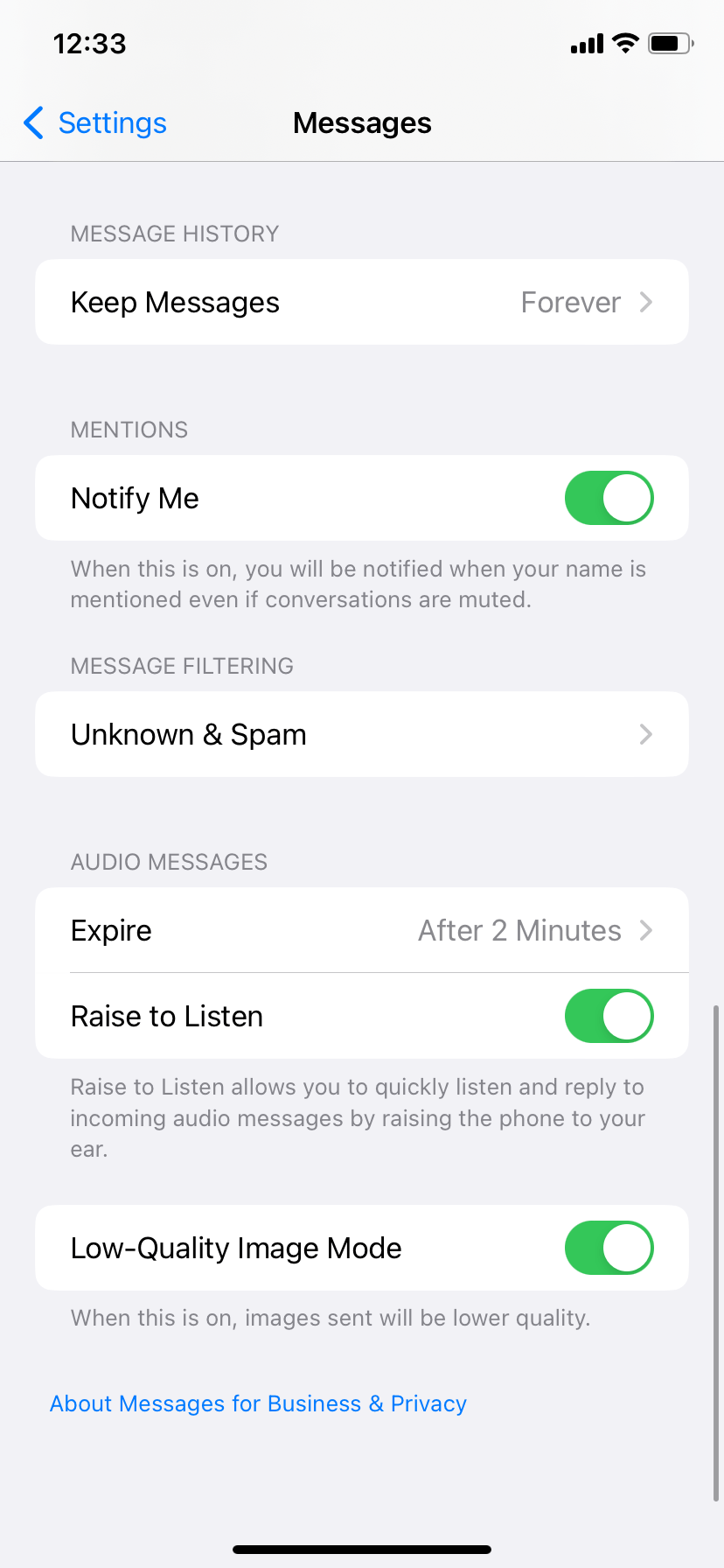iOS中的另一個有趣的功能是能夠自動刪除舊消息。您可以將消息設置為30天或一年後到期。僅兩分鐘後,音頻消息就可以更快地過期。