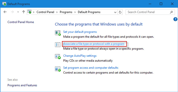 步驟 3:單擊“將文件類型或協議與程序關聯”鏈接。