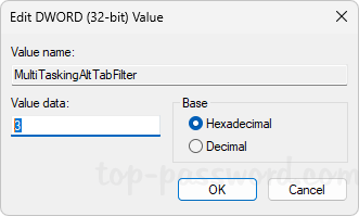 - 將其價值數據更改為以下一個取決於您的選擇。就我而言,我將值設置為3,以防止Windows 11在Microsoft Edge中顯示選項卡。