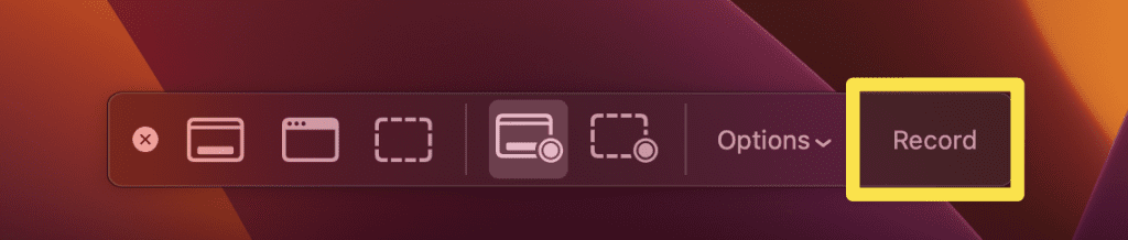 - 屏幕截圖工具欄將出現在屏幕底部。單擊記錄按鈕開始錄音。
