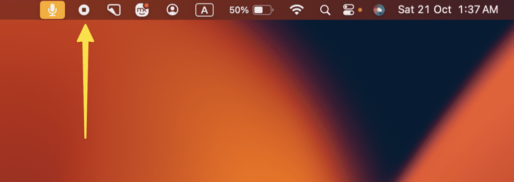 - 屏幕錄製完成後,找到停止菜單欄中的圖標並單擊它。