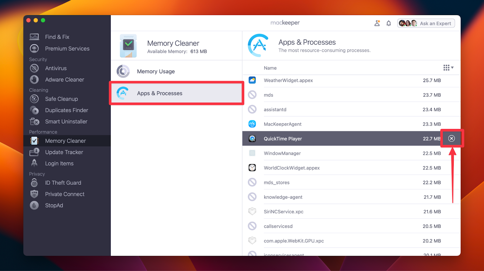 雖然有點不傳統,但您可以使用 MacKeeper 的內存清理器來停止 Mac 上的 QuickTime 屏幕錄製。它的工作原理有點像活動監視器。以下是如何使用 MacKeeper 停止 QuickTime Player 上的屏幕錄製: