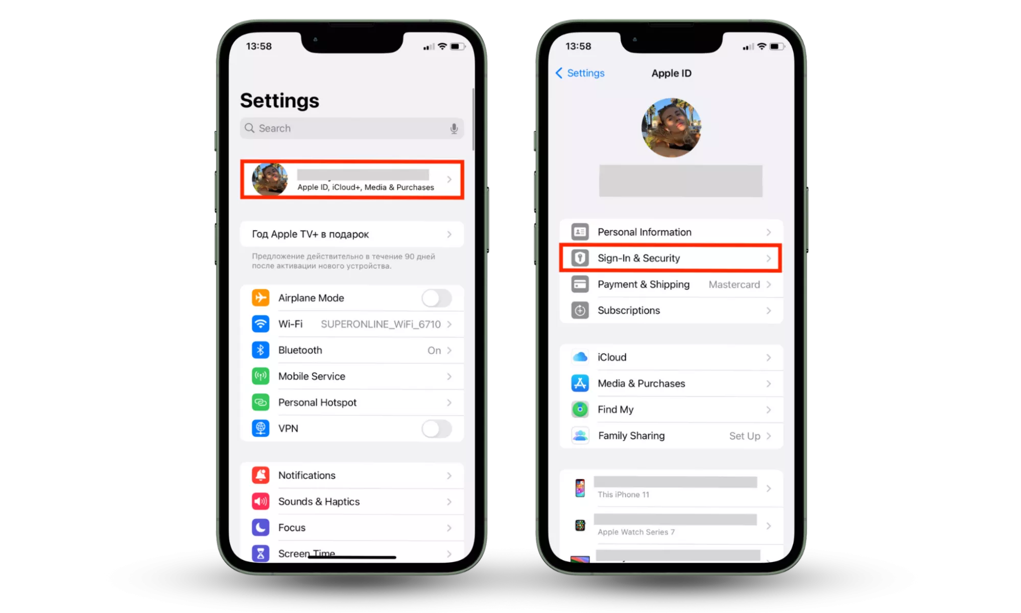 - 在您的 iPhone 上,按設定並選擇您的名字。
