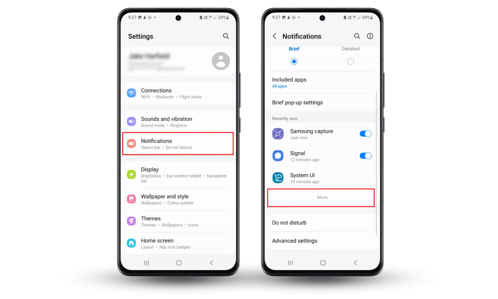 - 打開設置 > 通知,然後向下滾動並點擊更多的在“最近發送”下。