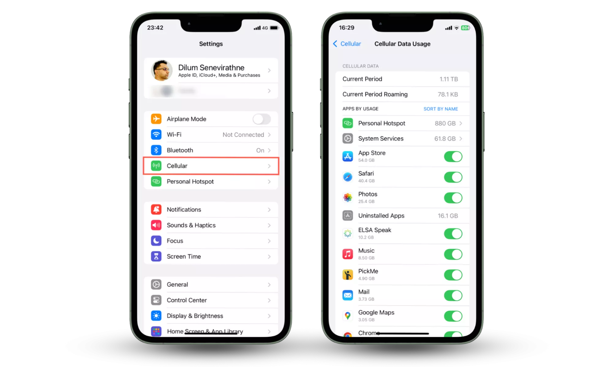 以下是在 iOS 中檢查蜂窩數據使用統計信息的方法: