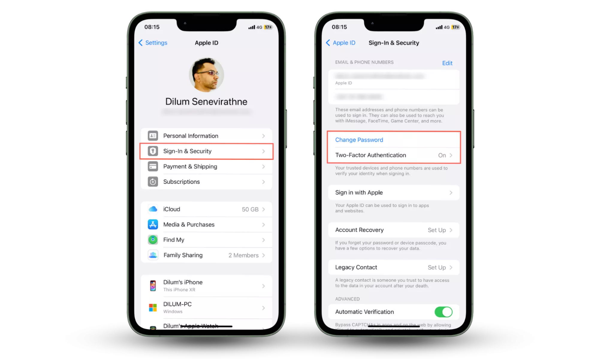 步驟 1-3:前往“設置”>“Apple ID”>“登錄和安全”並更改密碼。