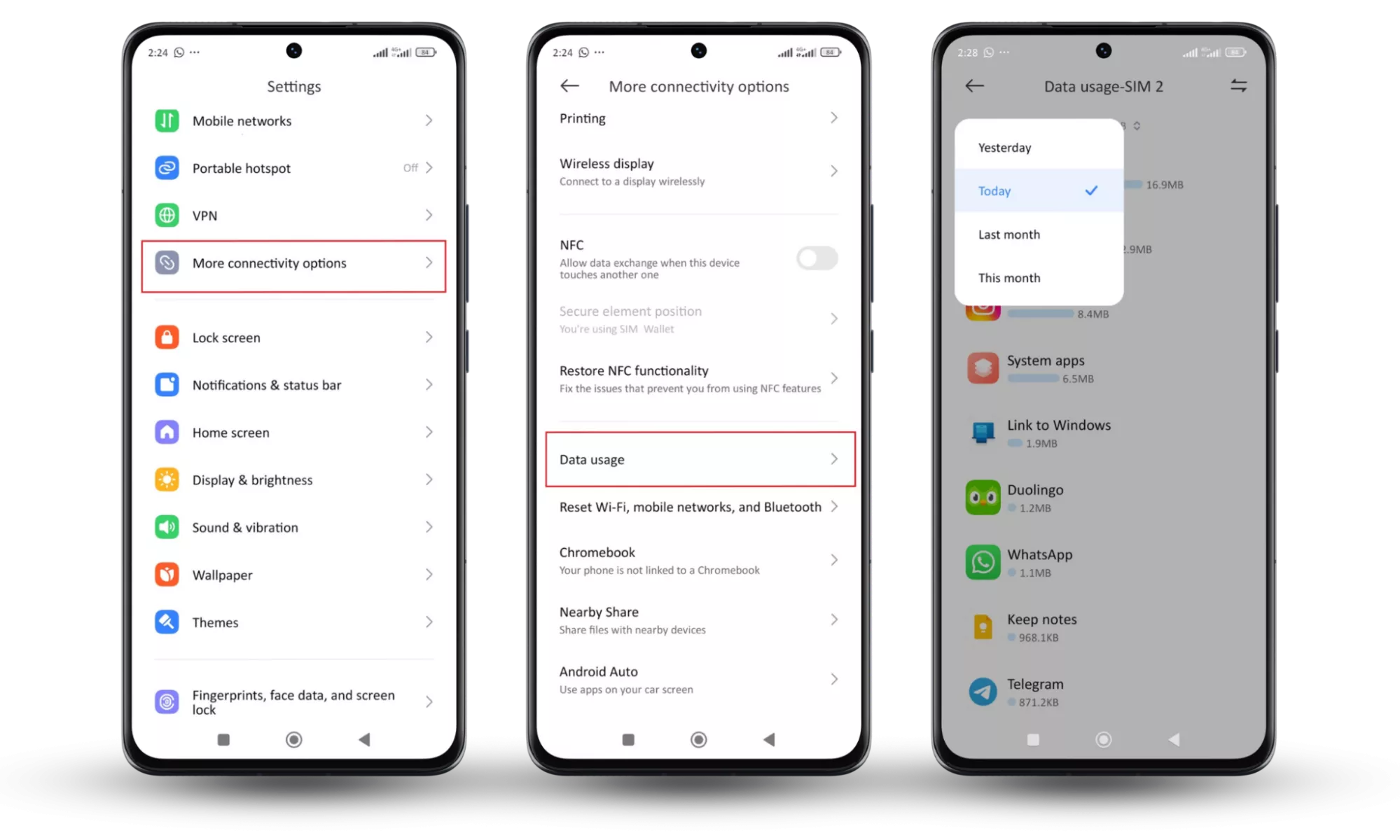- 查看應用程序列表及其數據消耗。查找任何使用異常大量數據的應用程序。