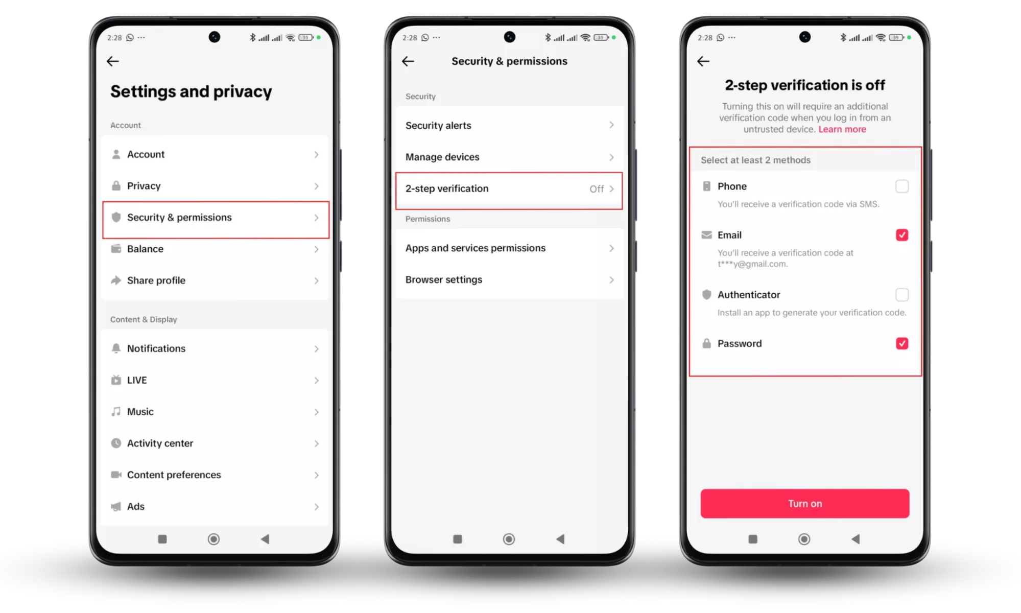 步驟 1-4:轉到“設置和隱私”> 單擊“安全和權限”> 點擊“兩步驗證”> 選擇您首選的身份驗證方法。