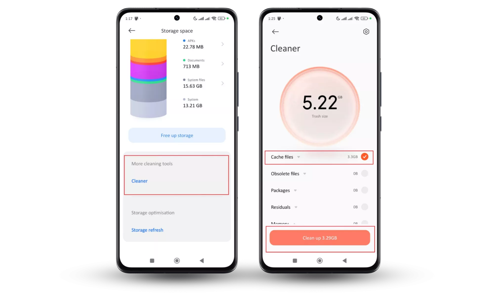 步驟 4-7:點擊清理器 > 選擇緩存文件 > 點擊清理。