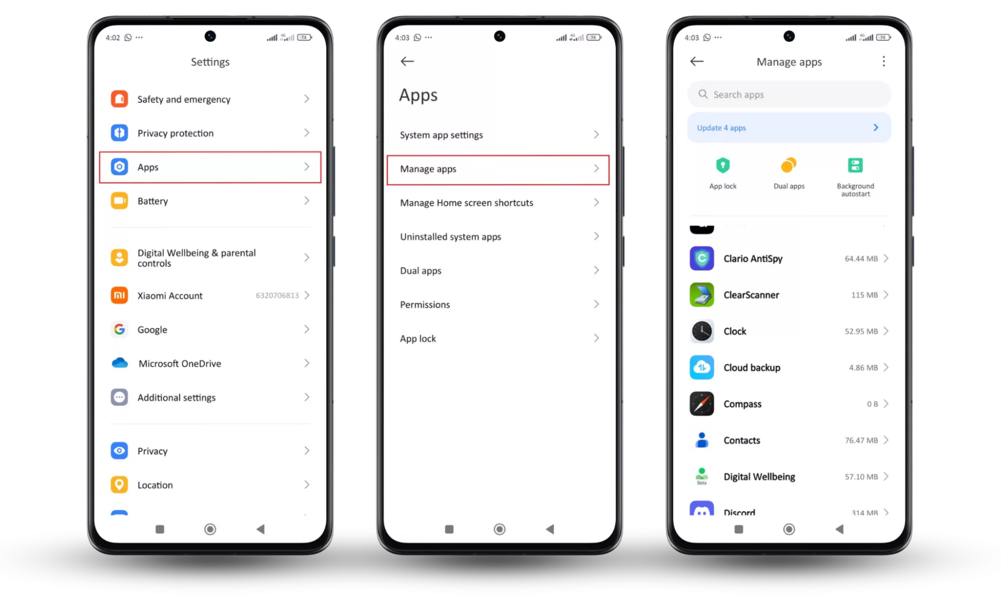 步驟 1-4:轉到“設置”> 點擊“應用程序”或“應用程序”> 點擊“管理應用程序”> 查看已安裝的應用程序。