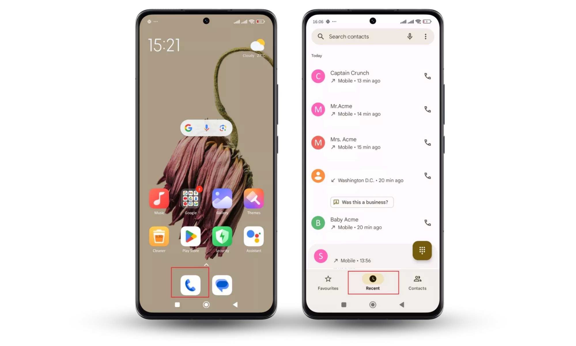 步驟 1-3:打開“電話”應用 > 點擊“最近”選項卡或通話歷史記錄圖標 > 滾動瀏覽通話列表。