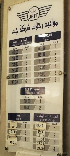 - 4:30 – 5:00 左右乘坐出租車前往亞喀巴(25JD),可以乘坐從亞喀巴到安曼的最後一班 JETT 巴士,該巴士於下午 6 點出發