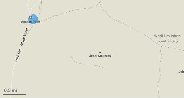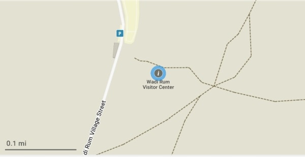 在上面的 Maps.Me 屏幕截圖中,您可以看到瓦迪拉姆遊客中心(突出顯示)以及屬於七大支柱的一部分的 Jebel Makhras(馬赫拉斯山)。此外,您還可以看到幾條遠離遊客中心的小徑。