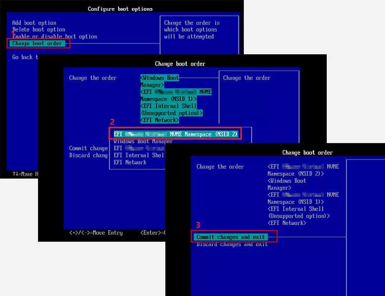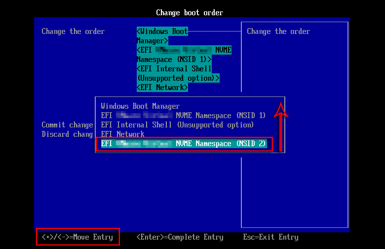 步驟36:重啟後,輸入更改啟動順序並將新添加的 SSD 移動到