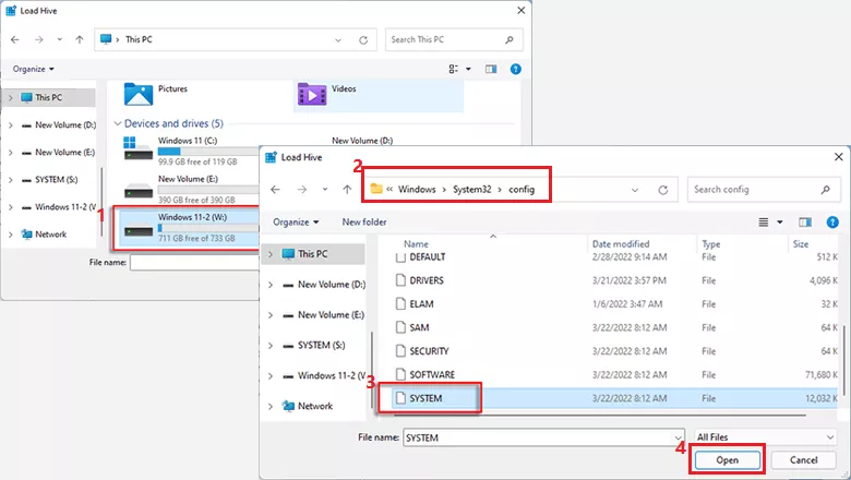 步驟27:在彈出的窗口中,找到W盤>視窗>系統32>