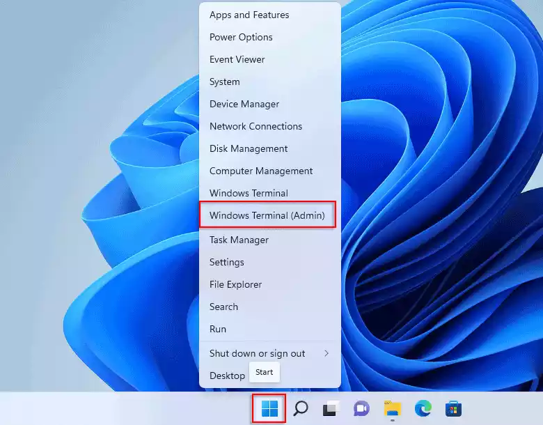 步驟3:返回桌面,點擊開始位於擴展塢上,然後選擇Windows 終端(管理員)。
