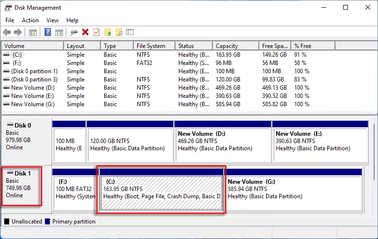 步驟37:進入磁盤管理,此時C盤已經成功轉移到