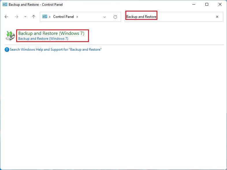 步驟2:在地址欄上鍵入“備份和還原”,然後單擊備份與恢復