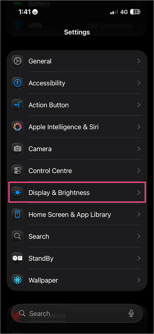 請按照以下步驟在運行 iOS 26 的 iPhone 上禁用 AOD:
