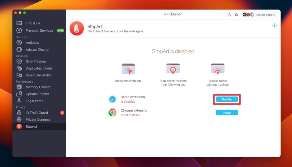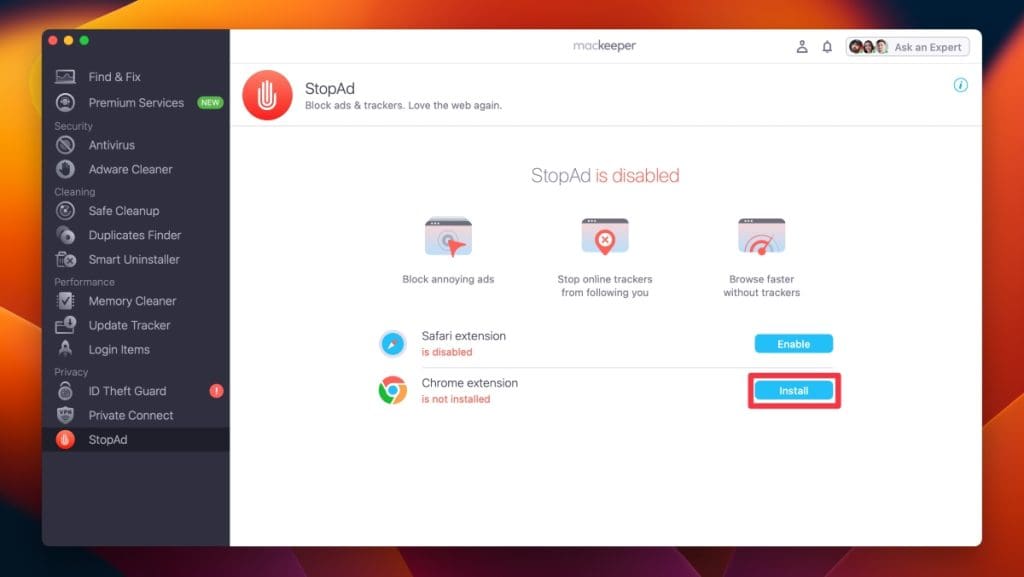 我非常清楚在 Mac 上工作時保持專注是多麼困難。正當我準備開始處理事情時,我卻收到了不需要的消息、廣告、彈出窗口和跟踪器。這就是我使用 MacKeeper 的 StopAd 功能的原因。它可以讓我指定在工作期間要阻止哪些網站,以最大程度地減少干擾。