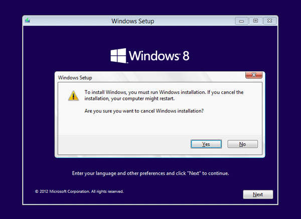- 完成後,關閉命令提示符並停止 Windows 安裝程序。