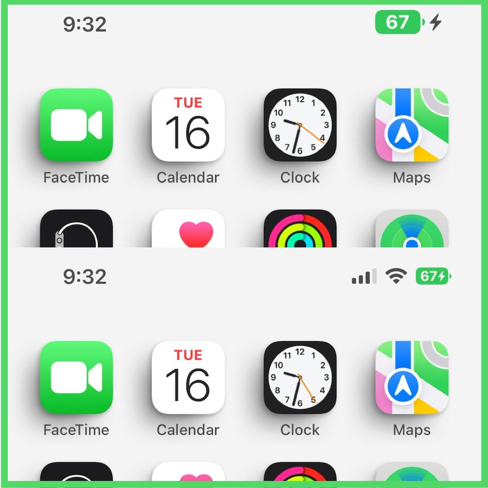 和以前一樣,當您切換到時,電池圖標會變成黃色低功耗模式。而當設備充電時,會出現帶有閃電符號的綠色圖標。值得注意的是,當您插入 iPhone 充電時,電池圖標現在會短暫變大。