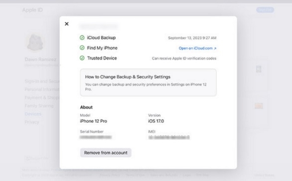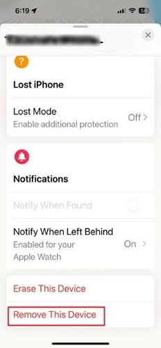 步驟2。向下移動以找到其他iPhone,然後單擊從帳戶中刪除。