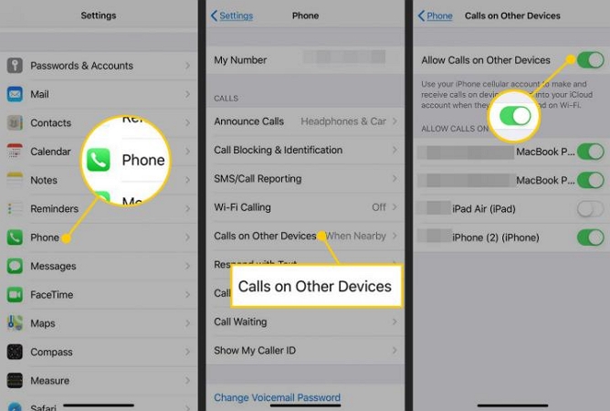 步驟3。在在其他設備上打電話部分,使用開關關閉通話設備。