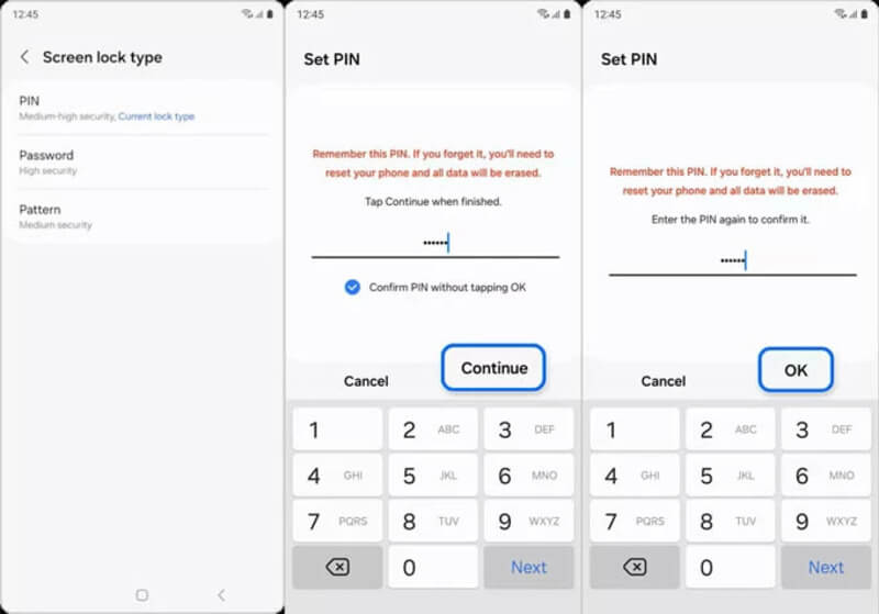 - 驗證後,系統會提示您創建新的圖案或者屏幕鎖定。
