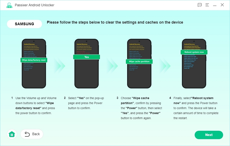 要繼續刪除密碼過程,請按照說明清除手機上的設置和緩存。步驟 5。