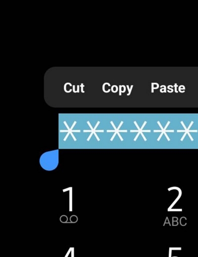複製星號序列並將其重複粘貼到字段中,直到不再突出顯示字符。然後,返回鎖定屏幕。第4步: