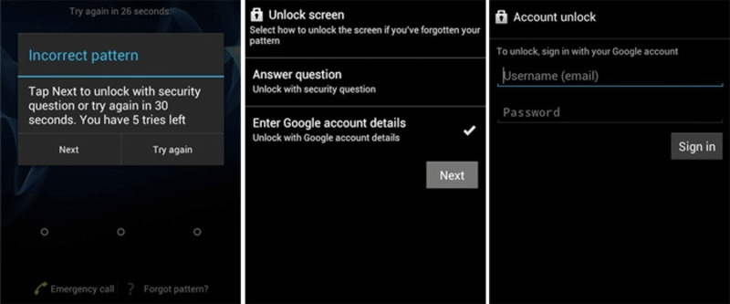 “忘記圖案”選項是舊版 Android 設備上的一項內置功能,允許用戶使用 Google 帳戶解鎖和重置鎖定屏幕。
