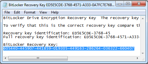 恢復密鑰是在首次設置 BitLocker 時創建的。恢復密鑰可能已保存或打印。這是我保存在計算機上的恢復密鑰。
