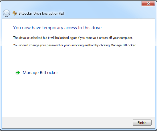 接受恢復密鑰後,您將獲得對驅動器的臨時訪問權限。