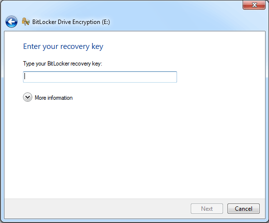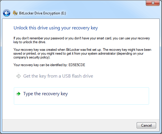 系統將要求您提供 BitLocker 恢復密鑰來解鎖驅動器。