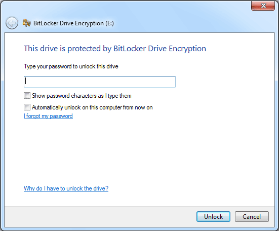 在Windows系統中插入BitLocker加密驅動器,系統會立即提示您輸入BitLocker密碼。