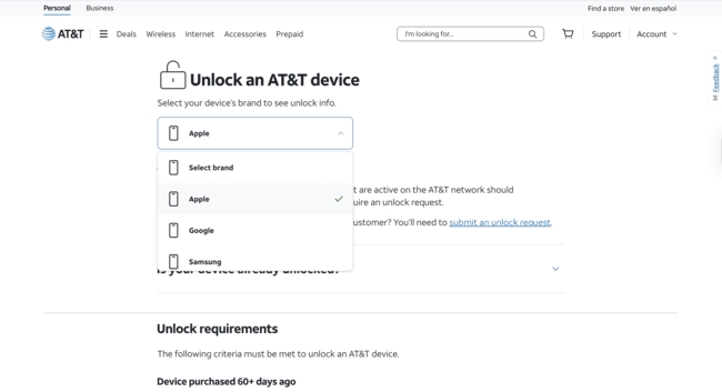 步驟1。前往 AT&T 的解鎖頁面。然後點擊提交解鎖請求。
