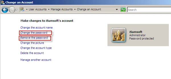 步驟 3:現在,更改或刪除任何其他用戶帳戶的密碼控制面板。