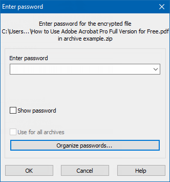 如果 Zip 文件中的文件已加密,當您嘗試提取此存檔文件時,它會要求輸入密碼。使用以下步驟提取文件或文件夾。