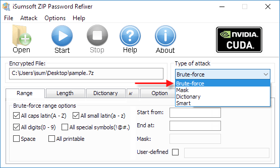 當您不知道密碼是什麼時,請選擇暴力攻擊。它將嘗試指定範圍內的所有可能的組合鍵,直到找到正確的密碼。當您對密碼包含哪些字符有基本了解時,這非常有幫助。