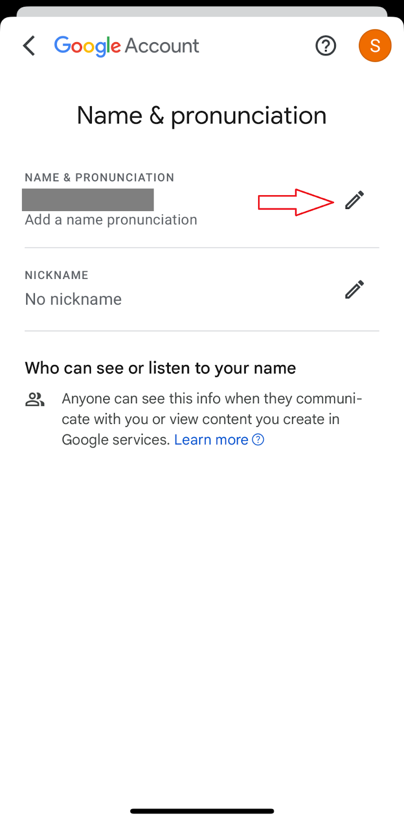 - 輸入新名稱:單擊鉛筆圖標輸入您的新名字和/或姓氏。