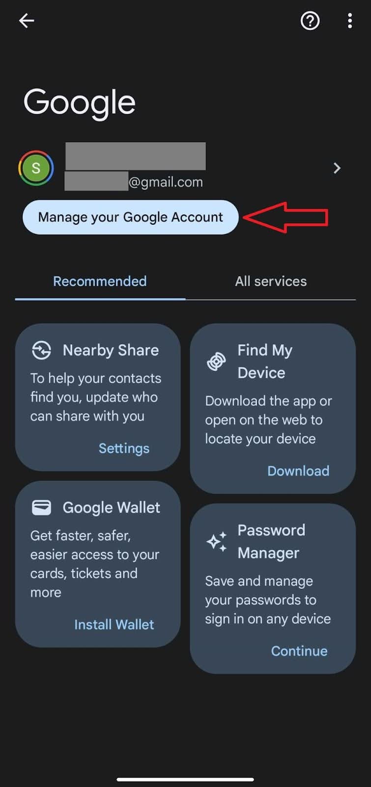 進入設置菜單後,您需要找到管理您的 Google 帳戶的選項:
